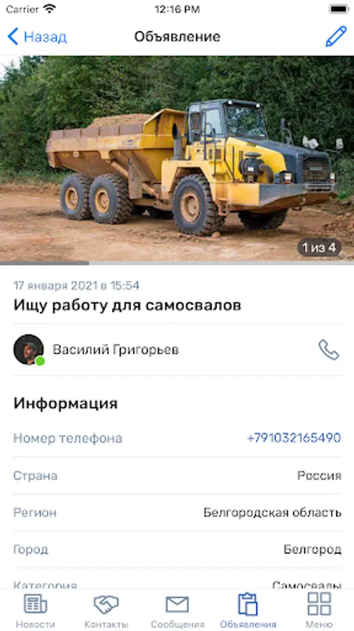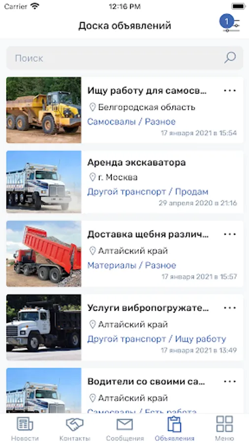 Fill out your personal profile in the app. Add your own special equipment, dump trucks or building materials. A personal profile is your personal website, a personal advertising campaign within the application.