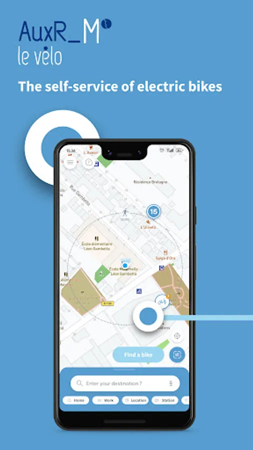 The AuxR_M le vélo bike sharing scheme is powered by Fifteen."