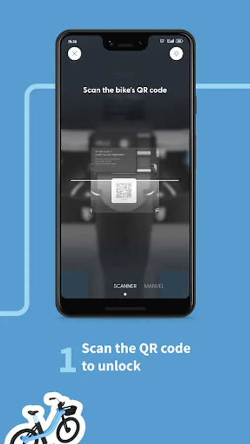 Open the app to find an electric bike nearby. Unlock it straight away by scanning the QR code. Whoosh, you’re already gone.