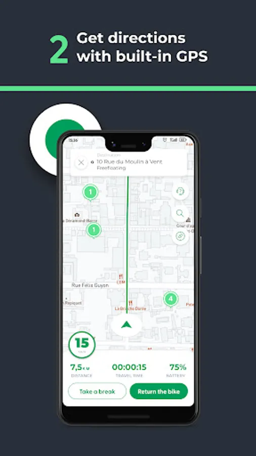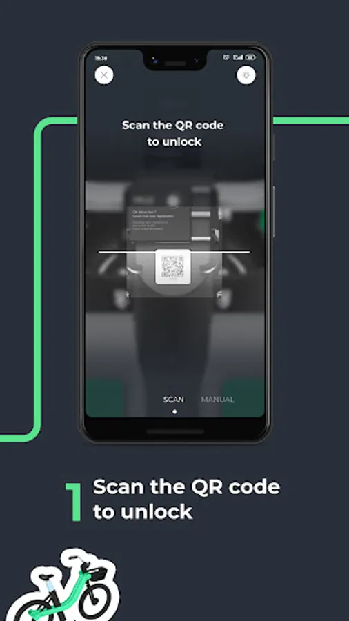 Open the app to find an electric bike nearby. Unlock it straight away by scanning the QR code. Whoosh, you’re already gone.