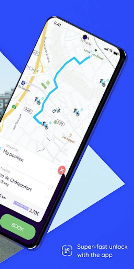 Open the app to find an electric bike nearby. Book your electric bike or unlock it straight away by scanning the QR code. Whoosh, you’re already gone.