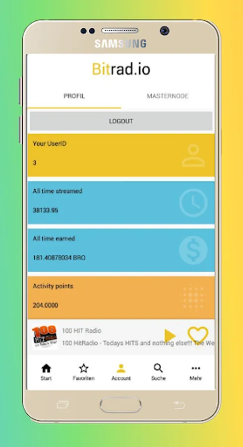 ● Get BRO Coins (Crypto) for every second you stream radio.
