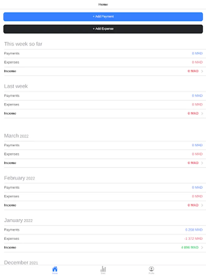Biz. Tracker is an app destined to business owners who want to keep track of their cash flow throug the years.