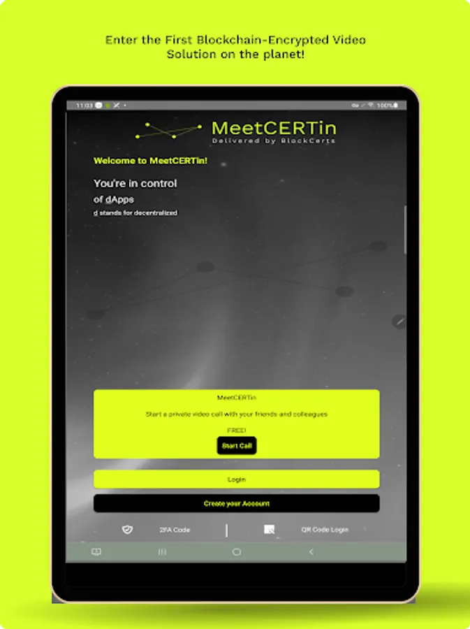 MeetCERTin is the first blockchain encrypted video conferencing suite on the planet! Now secure your virtual meetings, while providing a full suite of new tools in your virtual command center.