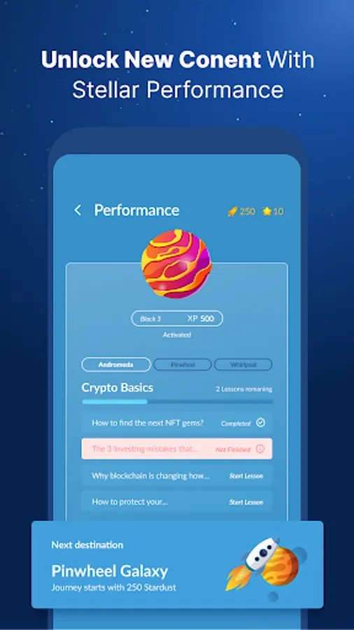 After completing each Crypto lesson, you will have to complete a quiz in order to be sure that you understand all the concepts of the lesson. If you pass the Crypto test, you will unlock the next lesson. All the lessons are accurately programmed to understand everything, starting from the easiest concepts like Blockchain, Bitcoin, Ripple, exchanges like blockfi, robinhood or Cryptomator, crypto trading, and finishing with more complicated concepts like NFTs, airdrops, blockfi, ethereum or polkadot