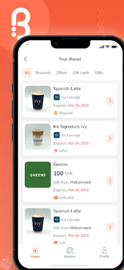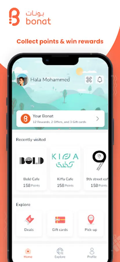 Bonat easily gets you rewarded at different businesses around you.