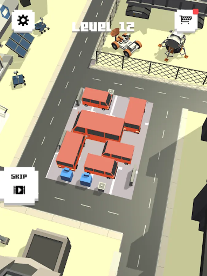 Play through countless challenging and fun parking lot puzzle levels and work your way to an empty lot! Your expertise will take you around the world, and even to space! Take in the picturesque environments and enjoy the blocky, colorful visuals as you relax your mind with exciting puzzles.