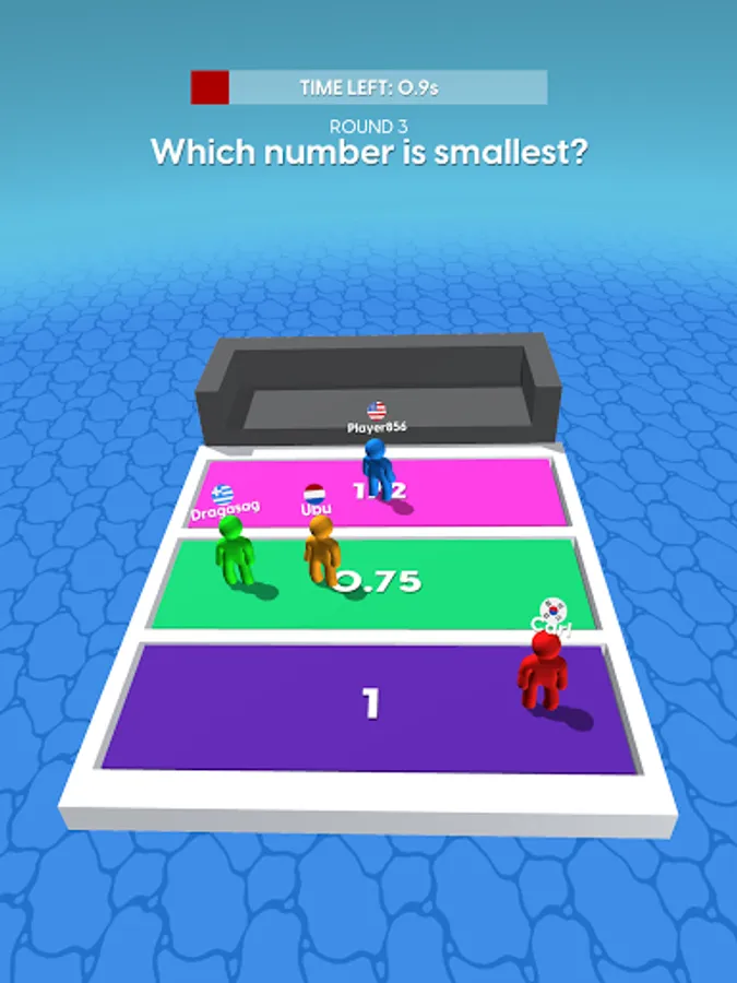 - Stand on the correct platform to avoid falling into the water when time expires!