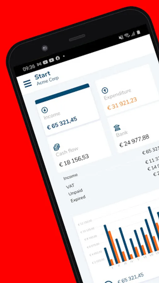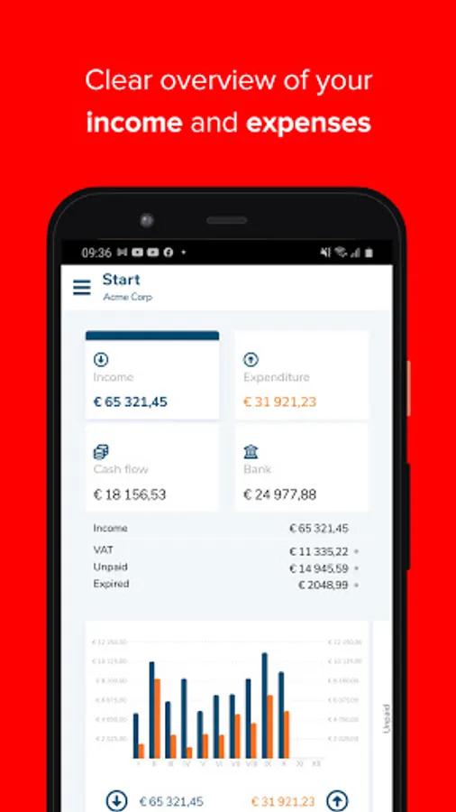 get an overview of your outstanding invoices, the balances of your linked bank accounts and cash flow on the dashboard.