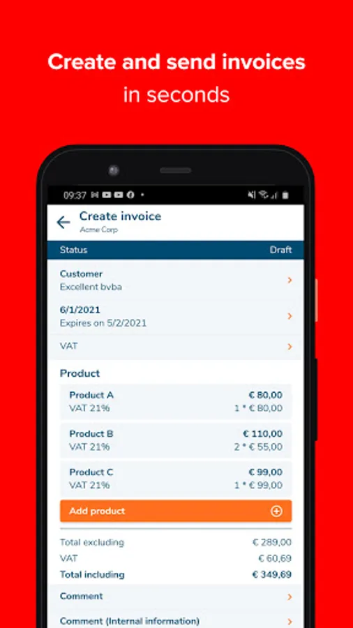 consult your incoming and outgoing invoices. All invoices are downloadable as pdf-files.