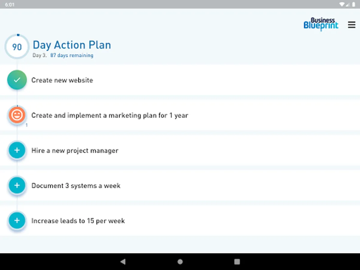 The "90 Day Action Plan" app from Business Blueprint lets you plan and track the top 5 projects you're working towards this quarter to maximise your business success. Focus on what's important, steer clear of distractions and stay motivated to hit your goals!