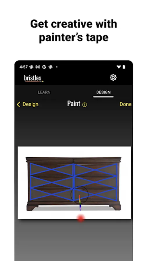 All you need are images of paint colors and products to build realistic mock-ups of your project ideas. If you're a visual person, you'll love the Bristles app and you'll finally have a tool to help you show your creative ideas to your partner and clients. Join the furniture artists and DIYers testing and sharing design ideas with Bristles BEFORE putting paintbrush to project IRL!