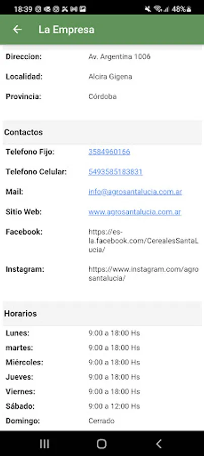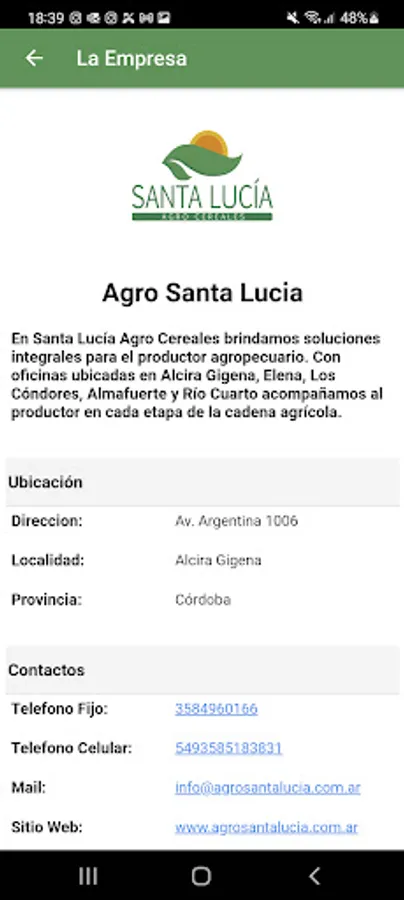 agricultural. With offices located in Alcira Gigena, Elena, Los Cóndores, Almafuerte and Río