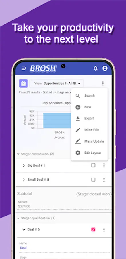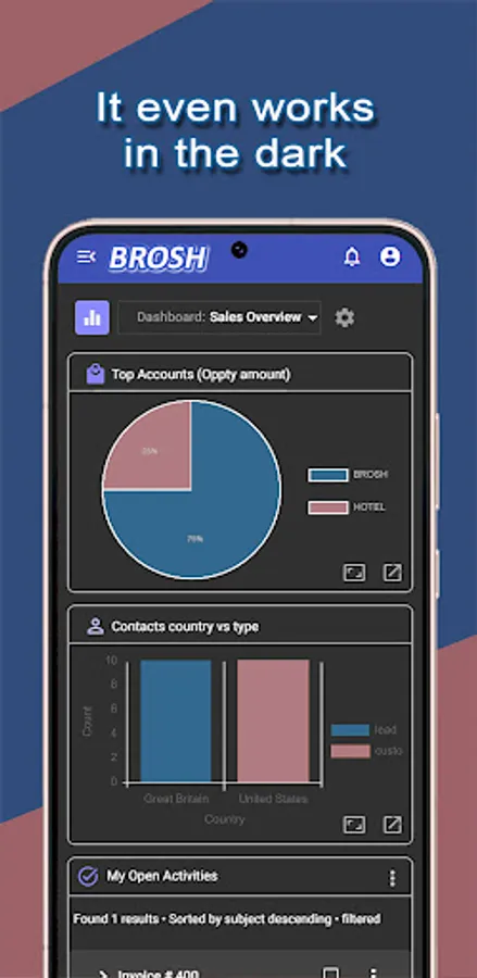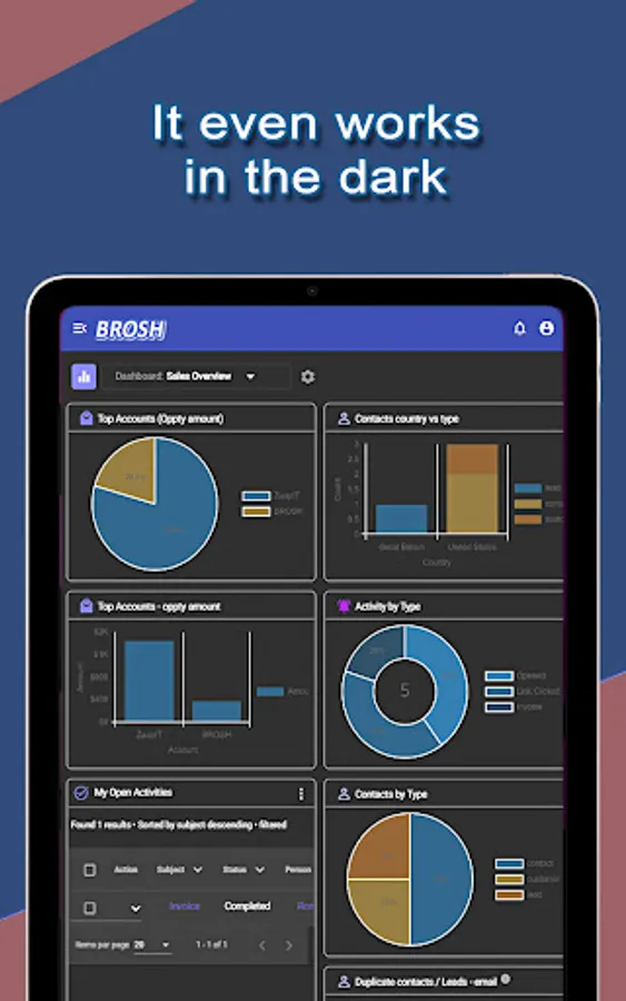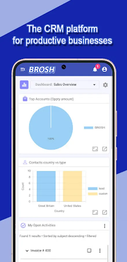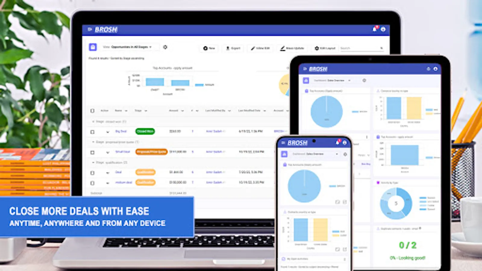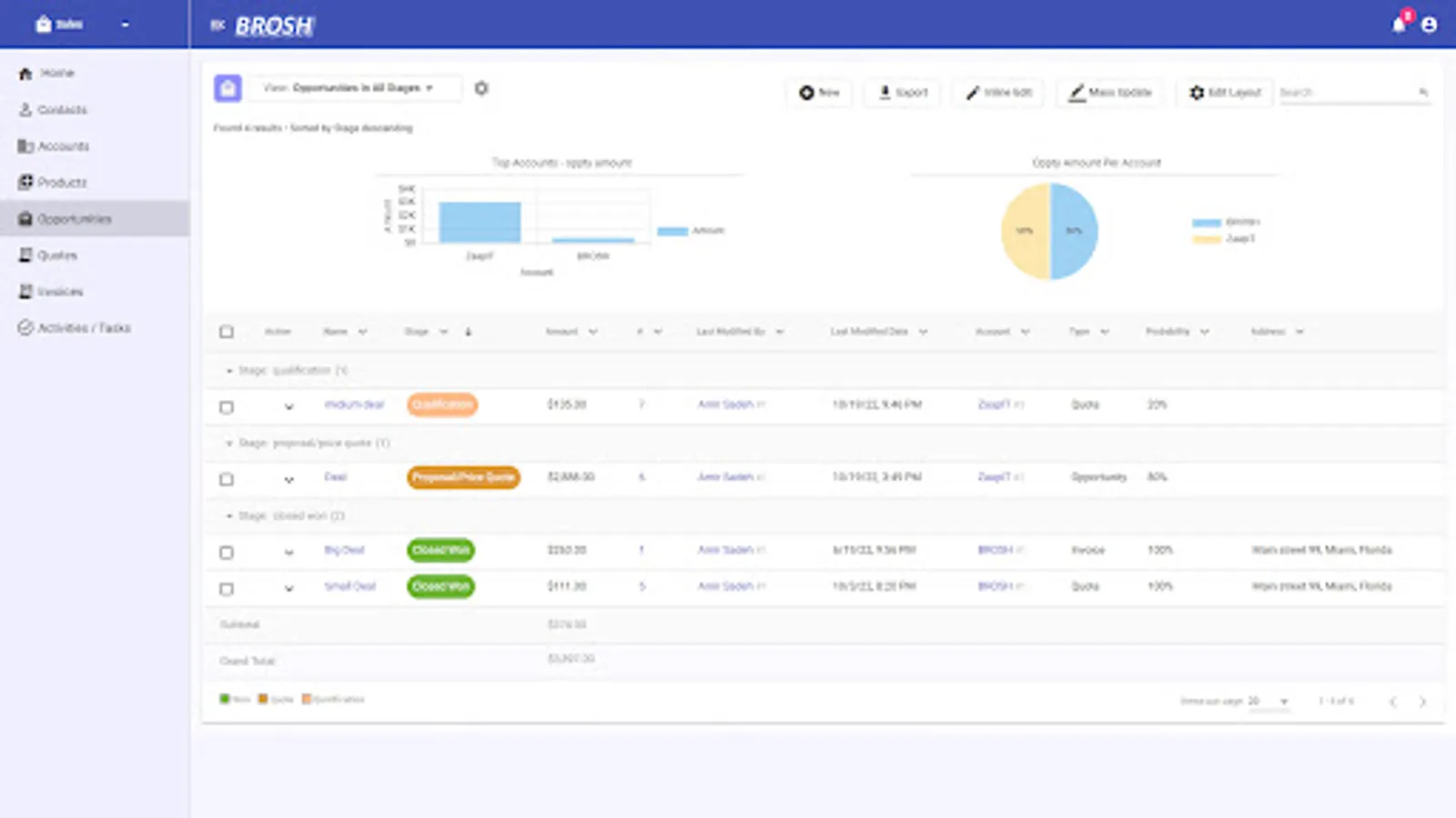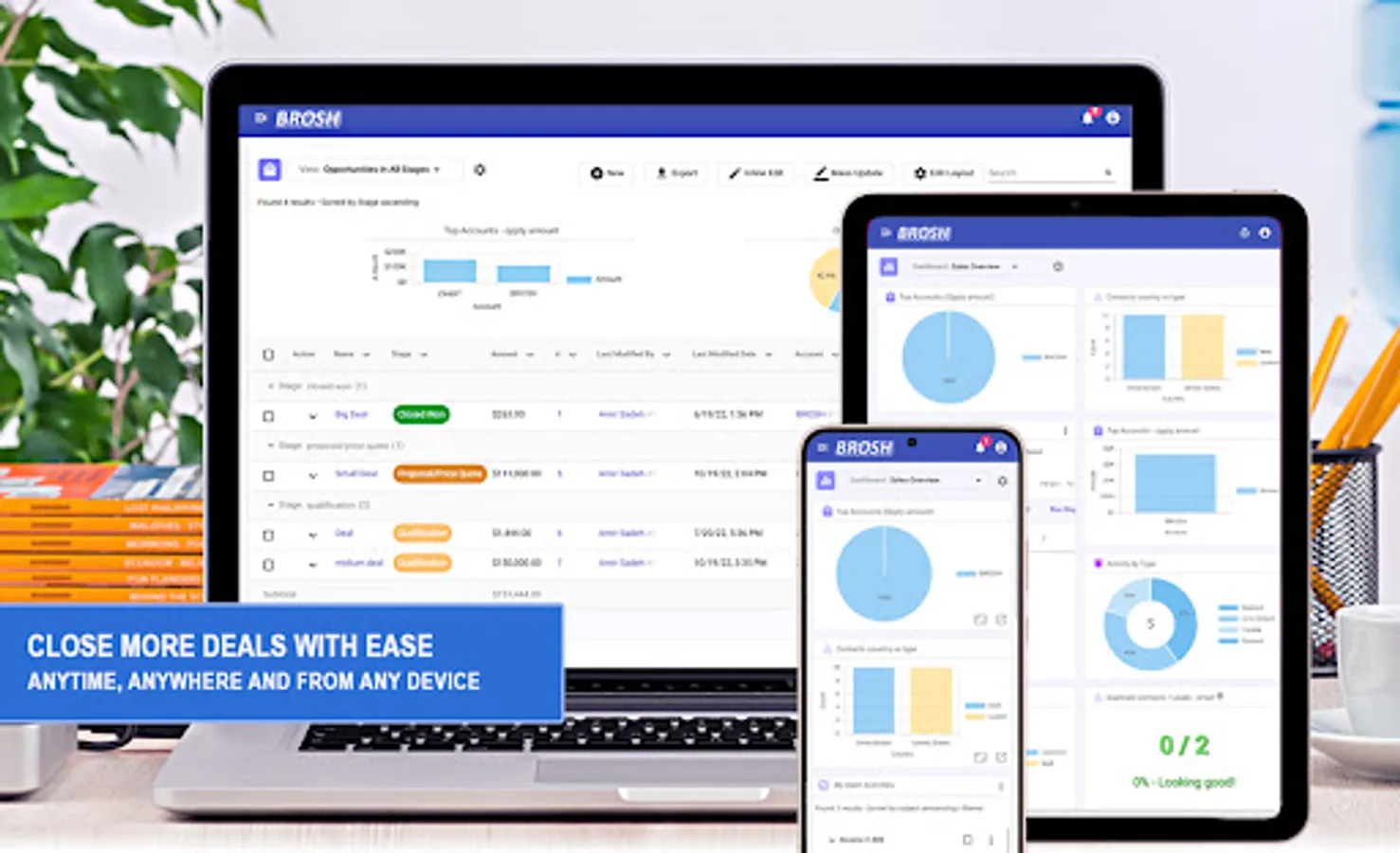 BROSH is a powerful, easy to use, multi-purpose cloud based CRM platform for business apps, it can manage Sales, Marketing and Service. If you run a consulting firm, a real-estate agency (relator), a law firm or any type of SMB then BROSH is for you. With BROSH you can run email campaigns, marketing automation, manage leads, accounts, contacts, opportunities, multiple sales pipelines, quotes, invoices, ABM (and much more). The best part is that your entire team's work is sync in one cloud-based platform, your team can work and sell faster than ever before on any device and from anywhere.