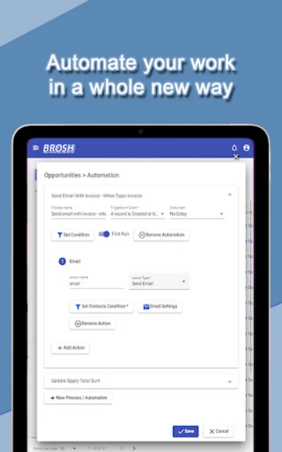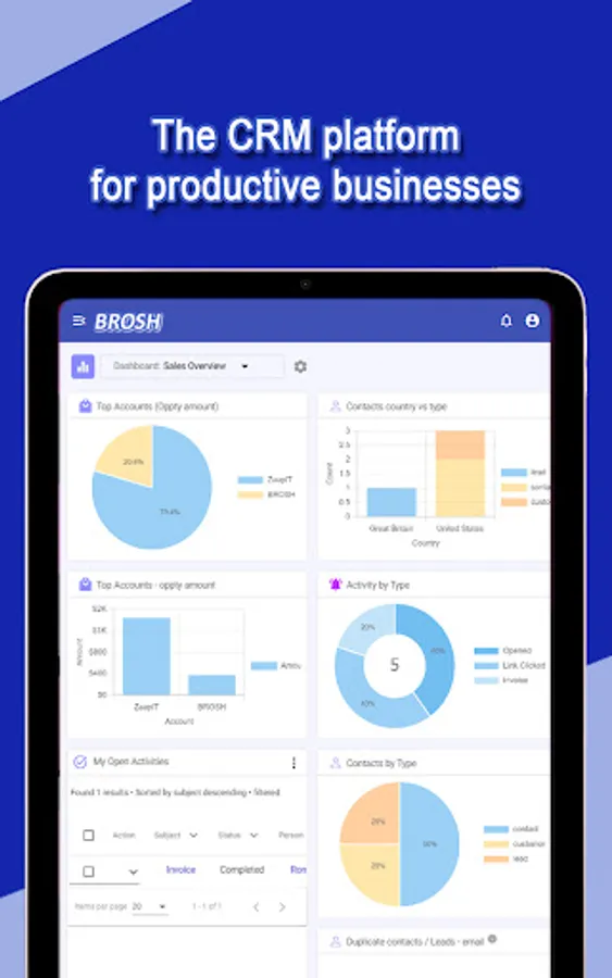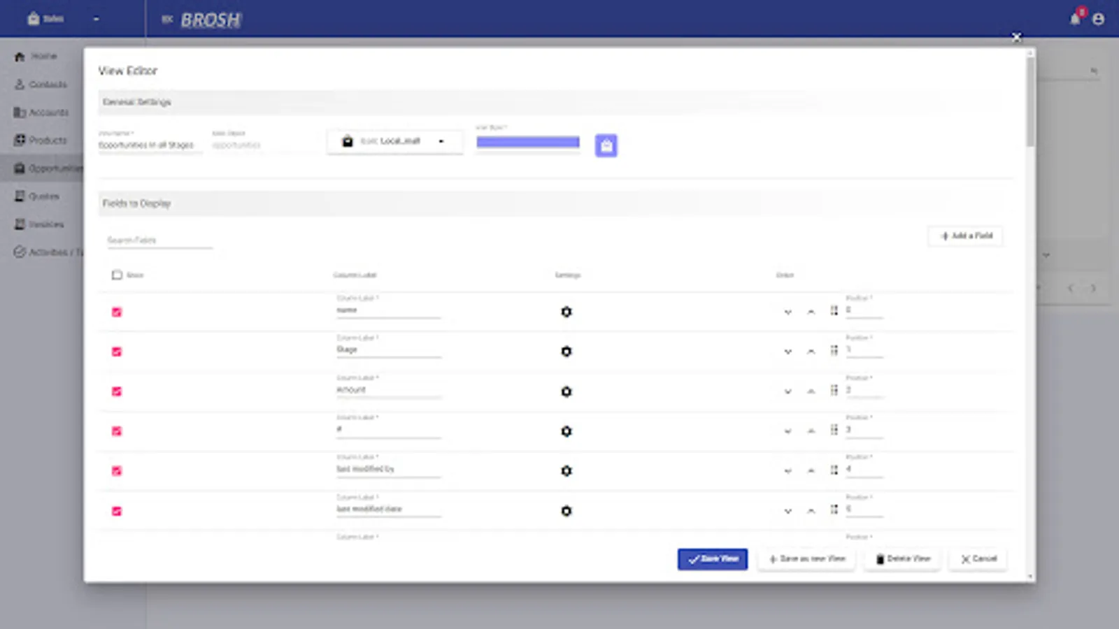 BROSH CRM is a powerful, easy to use, multi-purpose CRM platform for business apps e.g. Sales, Marketing, Service, HR, etc. Give your team advanced spreadsheet-like reports, consoles, smart related lists, powerful data management tools and outstanding automation. All are available in one superfast app (patent pending).