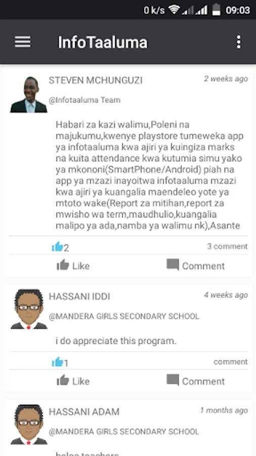 InfoTaaluma Application used for tanzanian school staffs to plug student academic affair such as students attendance,examination marks,teacher attendance,Student registration,School hostel roll-call and staffs registration etc