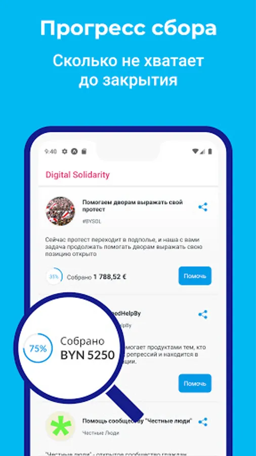 Digital Solidarity is a common platform for financing change, which collects collections from proven funds and initiatives in Belarus.