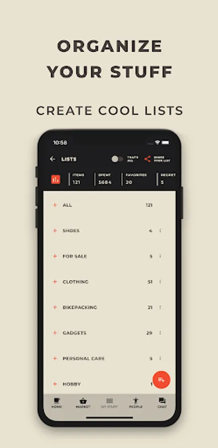 Organize your personal inventory. Create gear lists, track how much your pack weights. Control how much you are spending on stuff. Identify the excess and declutter. See other people's inventories, get inspired by a minimalist community.