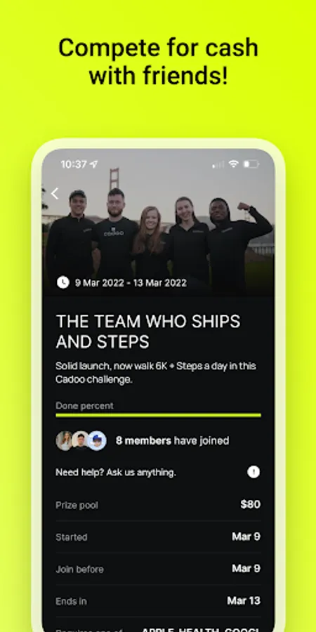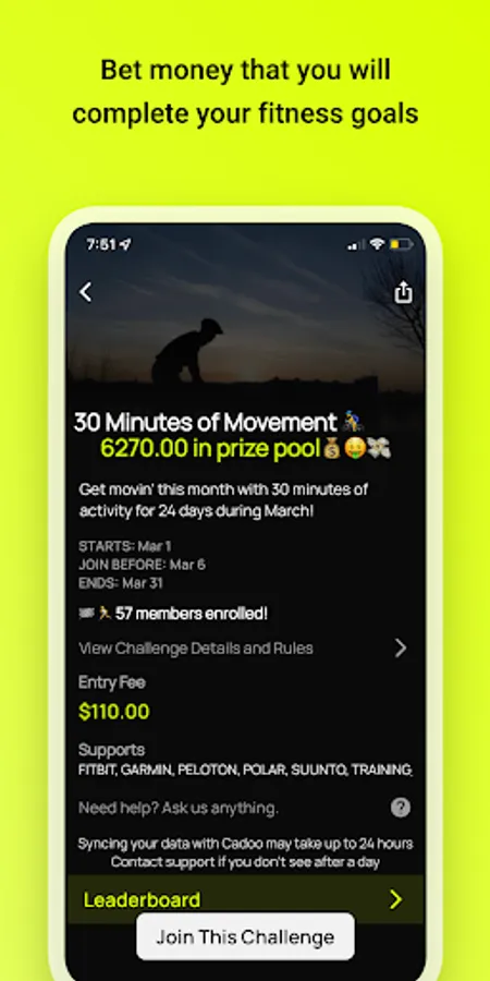 Cadoo challenges are fitness challenges which cost money to join and have a fitness goal for you to reach.
