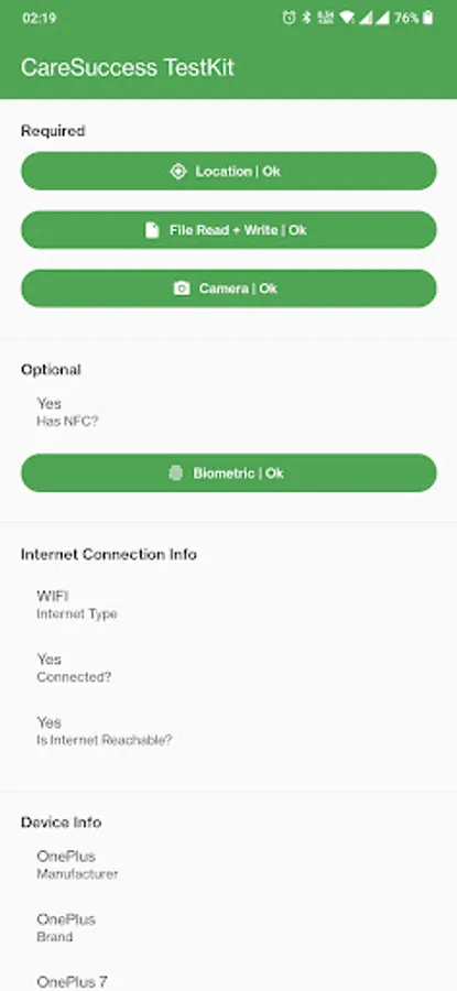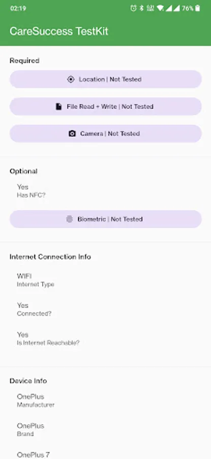 It tests if your device has the compatability to be able to correctly use the features within the CareSuccess mobile app.