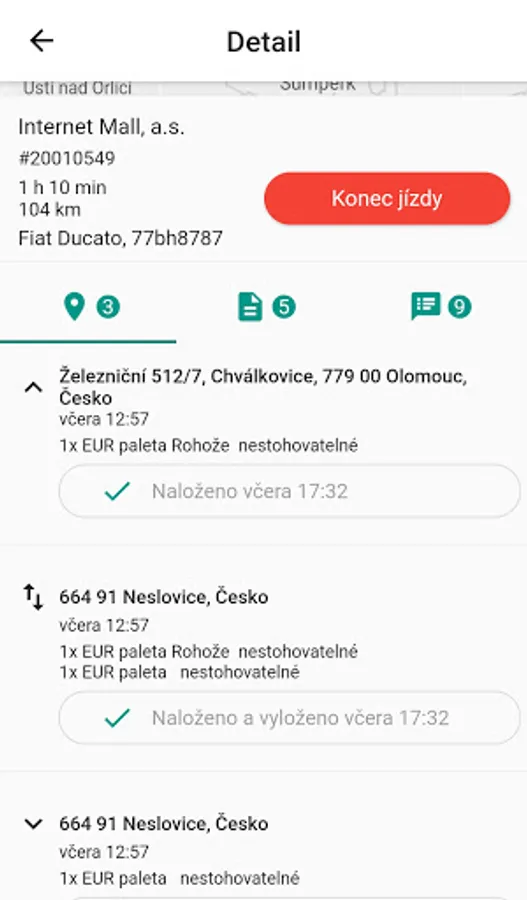 The driver can also use the mobile application to scan transport documents, which are displayed to the dispatcher in the system and can be easily communicated with via chat. The application can also track the driver's position with the goods and manage vehicles.