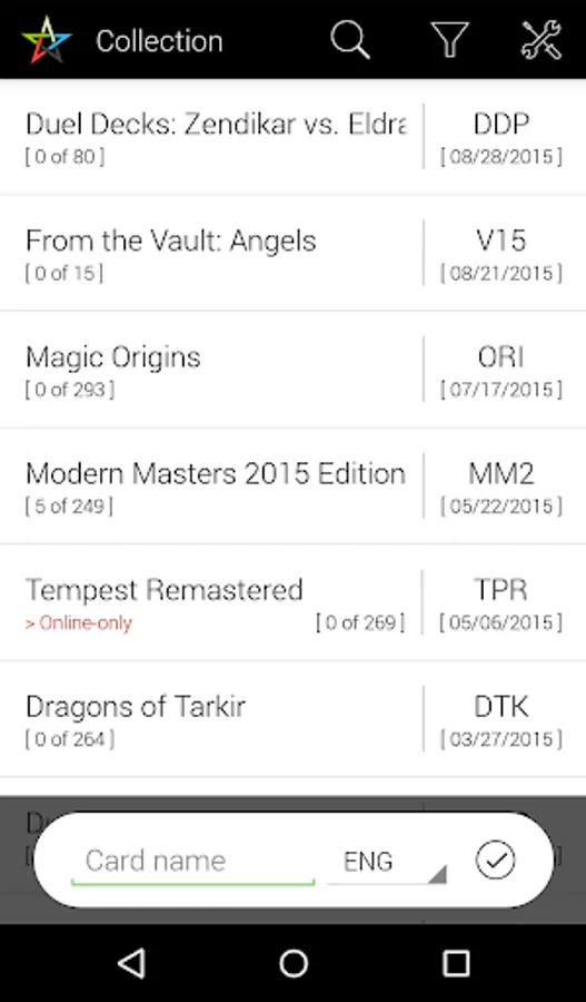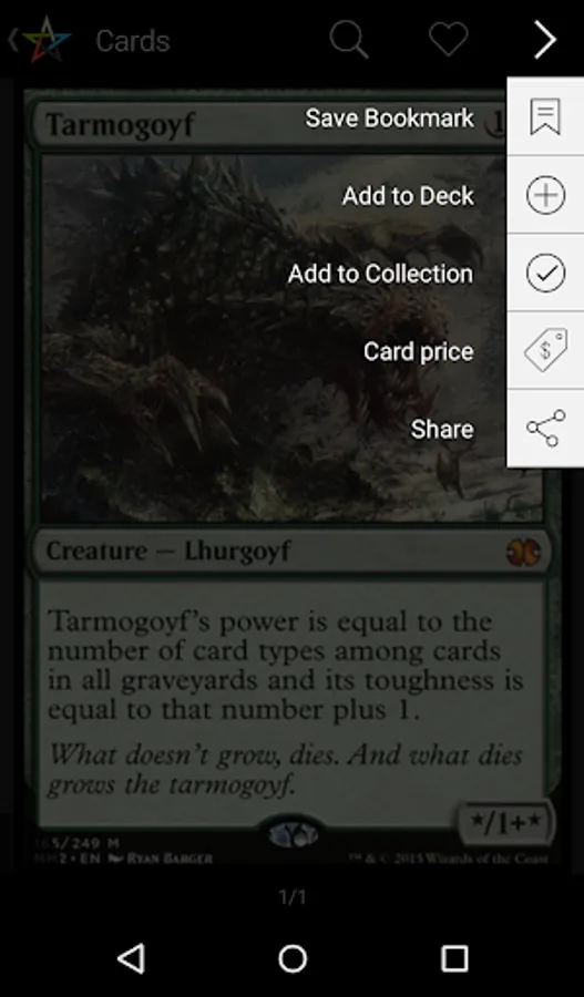 The application includes an offline card search to search for any card in the game without an internet connection.
