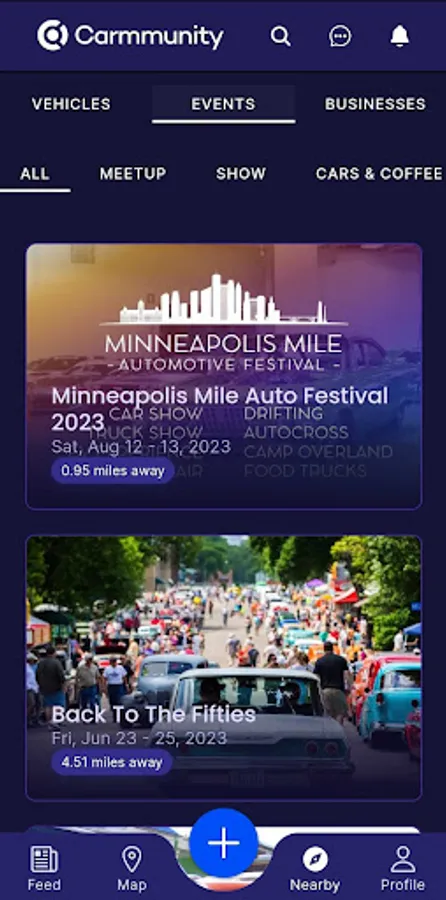 Discover more shows, meets, cruises, track days, and more, displayed on the live map.