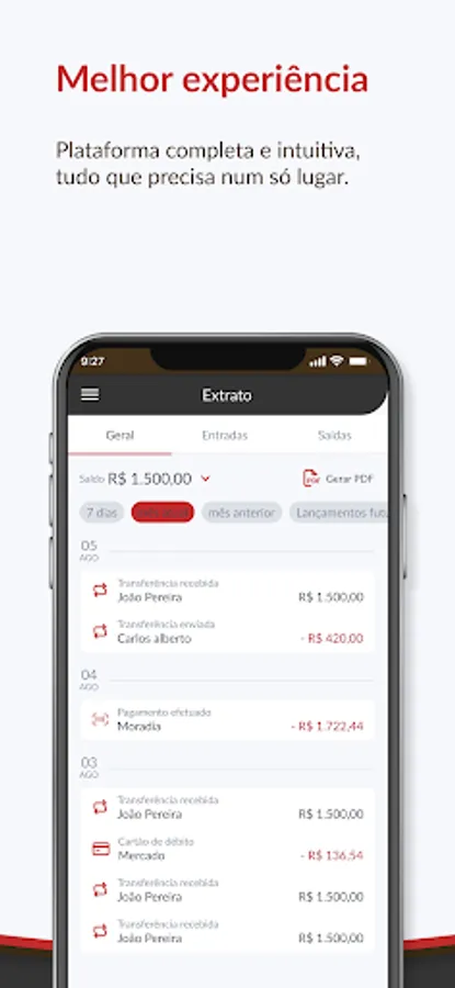Just open the app and use one of the many services, internal transfer, TED, and many more services.