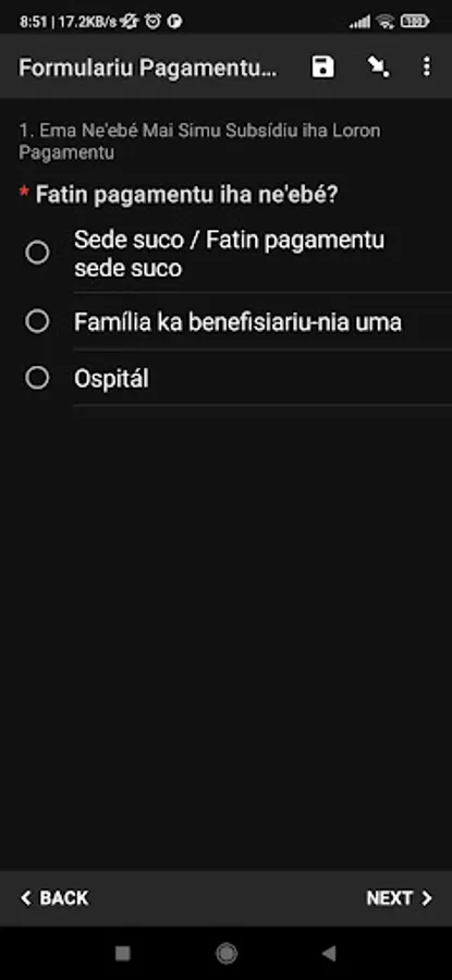 Aplikasaun hodi kolekta dadus ba pagamentu Subsídiu Fim do Ano iha Timor-Leste