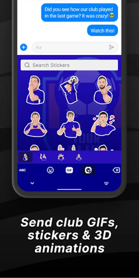 - Show your affiliation with the club by sending club themed stickers & GIFs