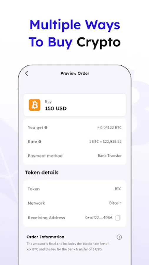- Buy crypto with fiat via bank transfer or bank card