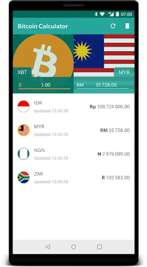 Bitcoin calculator/converter with prices based on the Luno exchange.
