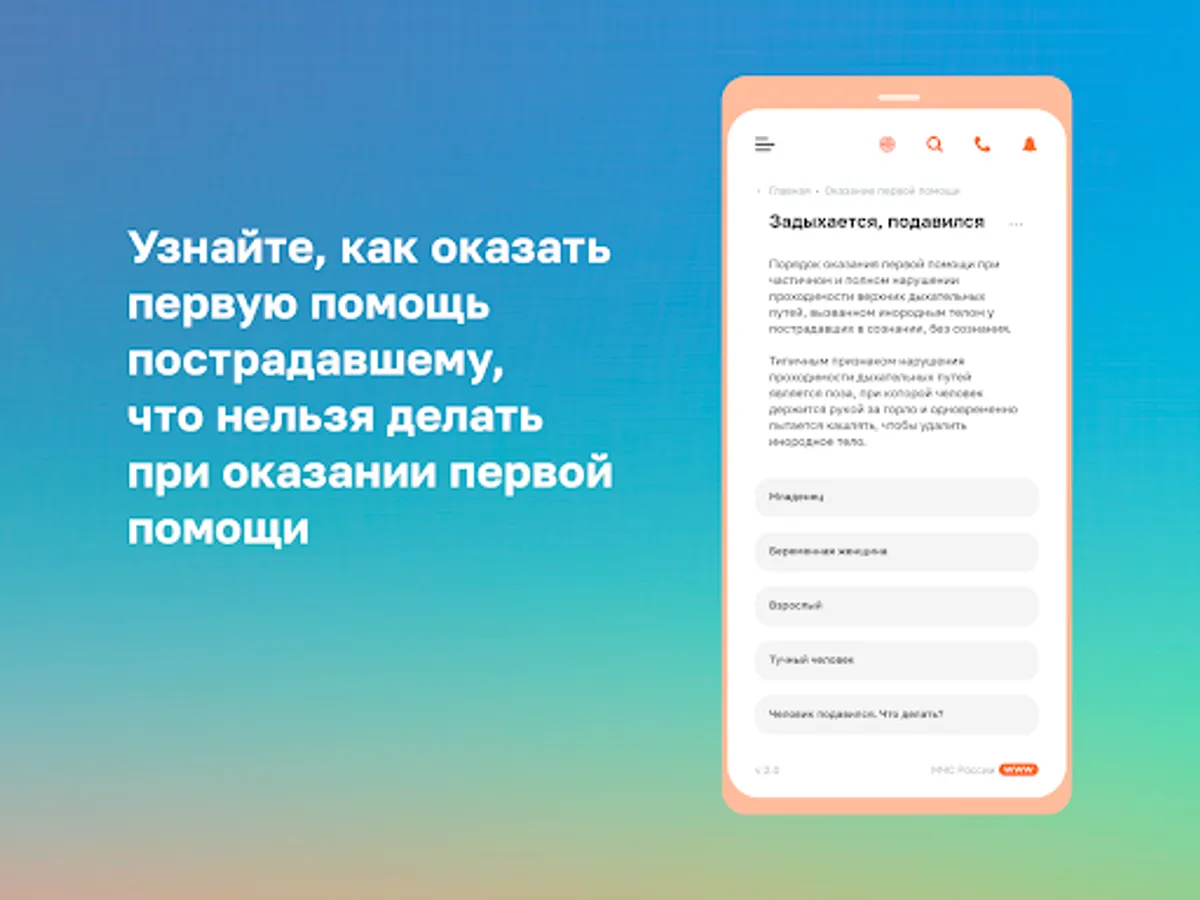 In the section "What to do?" You will find concise instructions at your fingertips with a clear sequence of actions and rules of conduct in an emergency. The section has a voice assistant that reads the text of the article if it is not possible to hold the phone or read the information on your own.