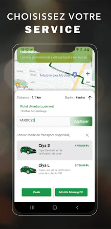 Welcome to a new way of getting around Kinshasa. CIYA! Is your private driver on demand. Thus, your safety is our top priority with transparency. Discover our app.