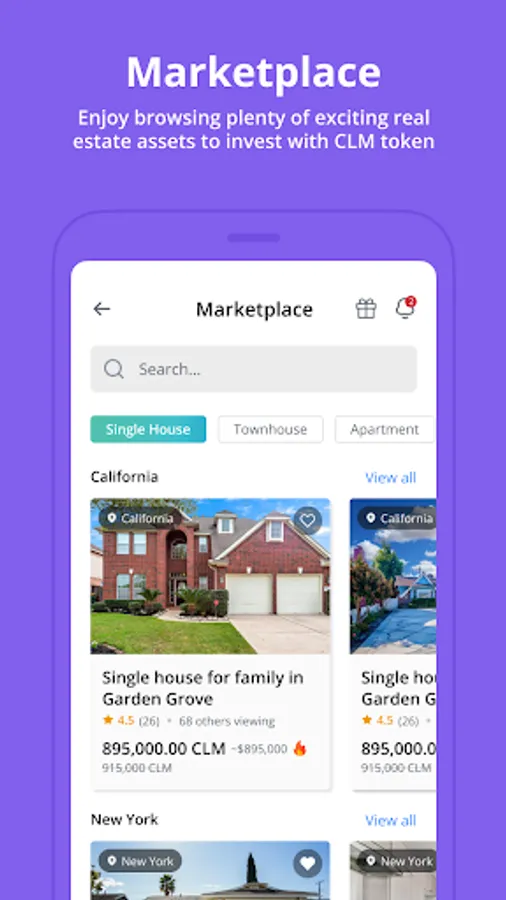 - Enjoy browsing plenty of exciting real estate assets to invest with CLM token