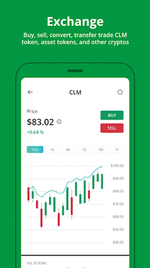 - Buy, sell, convert, transfer trade CLM token, asset tokens, and other cryptos