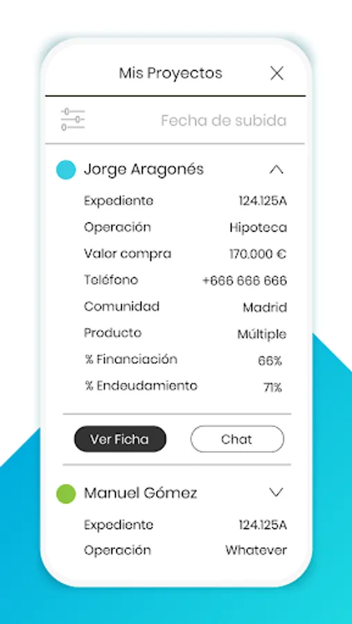 · Filters and access to the personal files of your clients, with their risk profiles and debt levels.