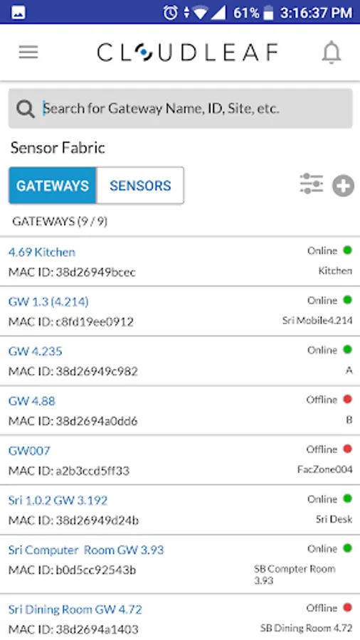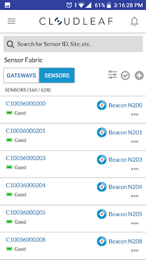 The application works in tandem with the Cloudleaf Sensor Fabric web application enables you to monitor assets. Using the app you can;