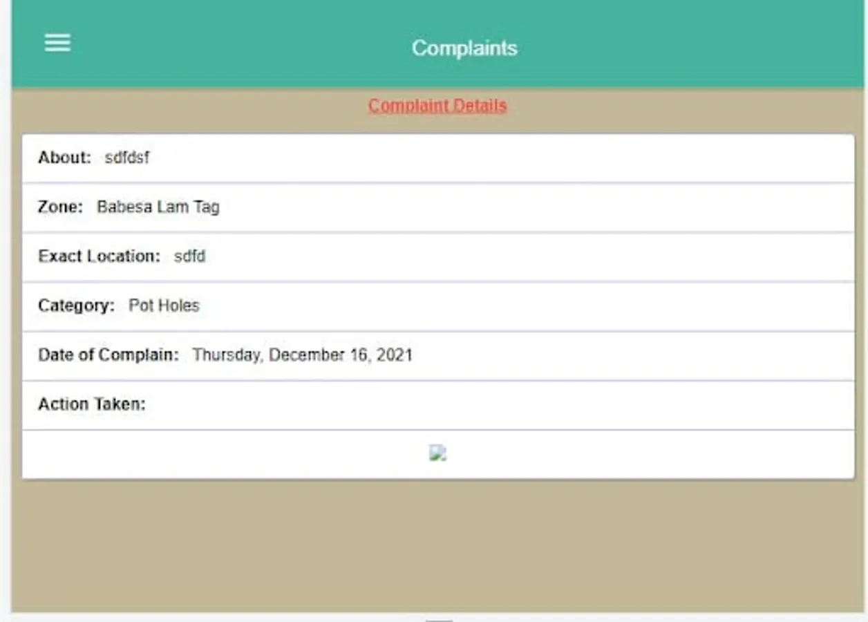 This app will be used by the general public to report any kind of complaints like road conditions, potholes, illegal waste dumping, water and sewerage related complaints.
