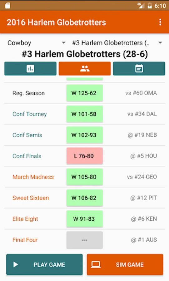 Take control of a college basketball team and manage lineups and offensive and defensive strategies. View detailed stats of every player and team as you progress along the season. Send your team to conference tournaments and take part in the ever exciting March Madness!
