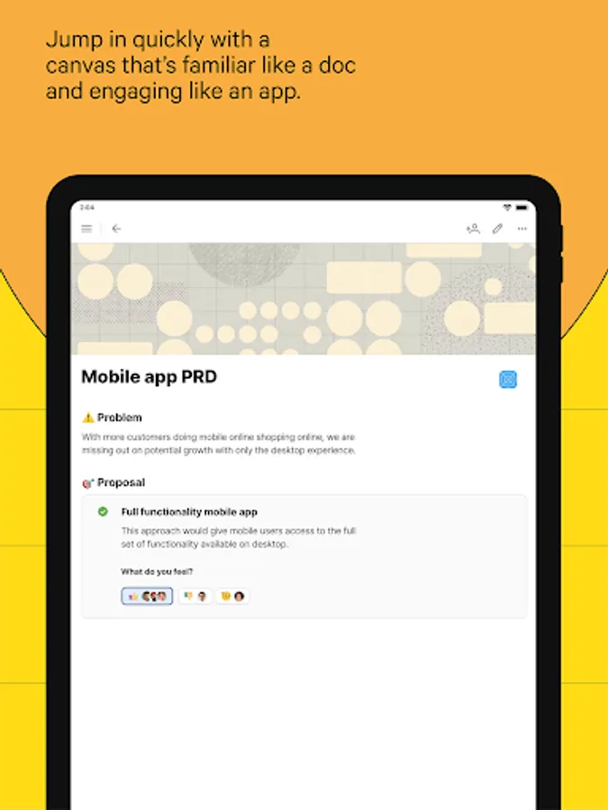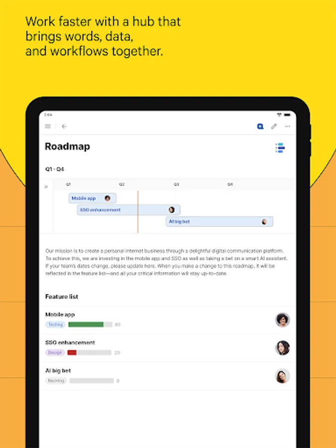 * Support your doc’s growth—and the evolution of your team’s workflows—with pages, outlines, headers, and other organizational features.