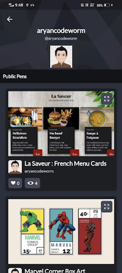- An option to upvote pens that users find appealing.