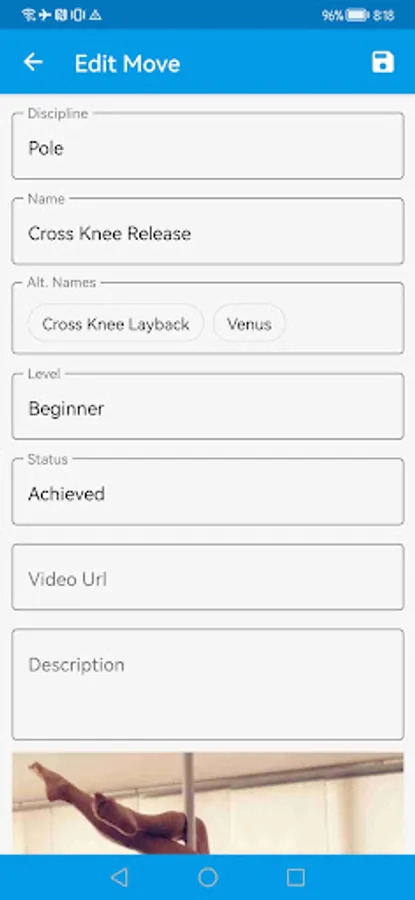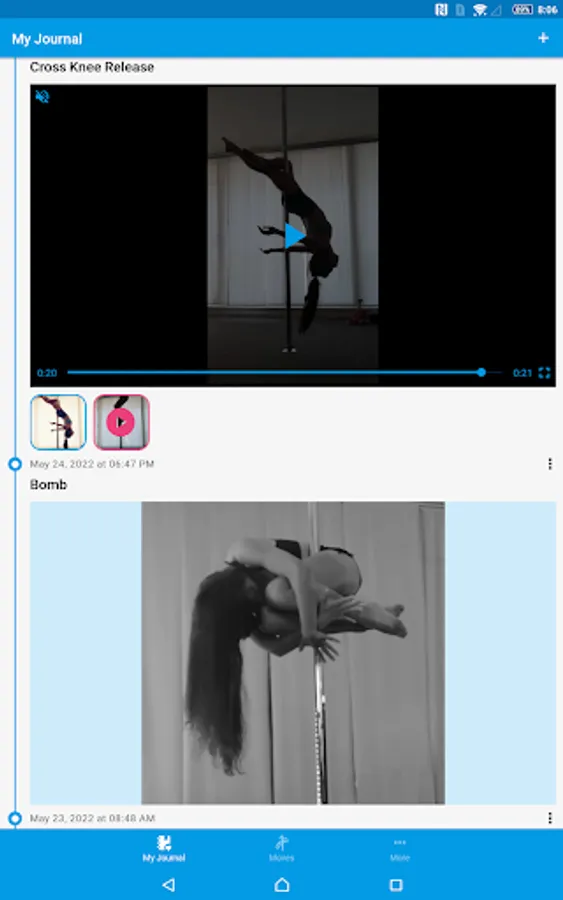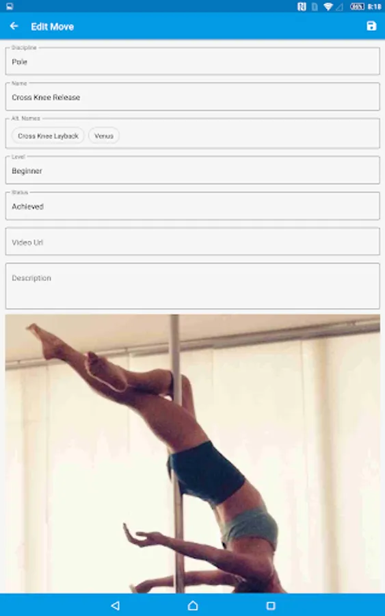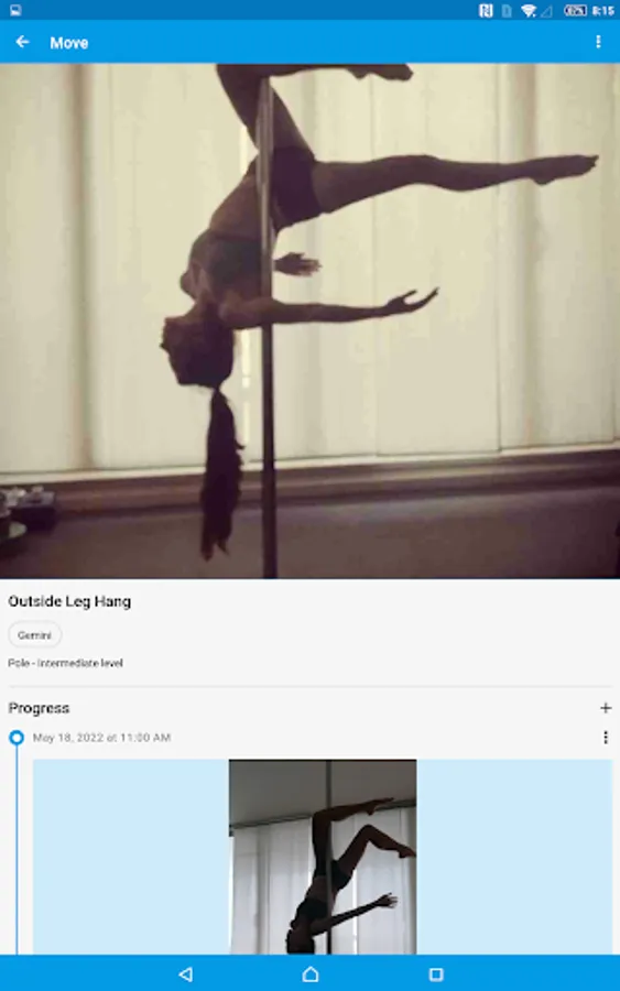 Acrobacy is a digital journal for pole dance, aerial and circus skills training. It offers easy ways to catalogue moves, organize training notes and media, log workouts, and visualize progress.