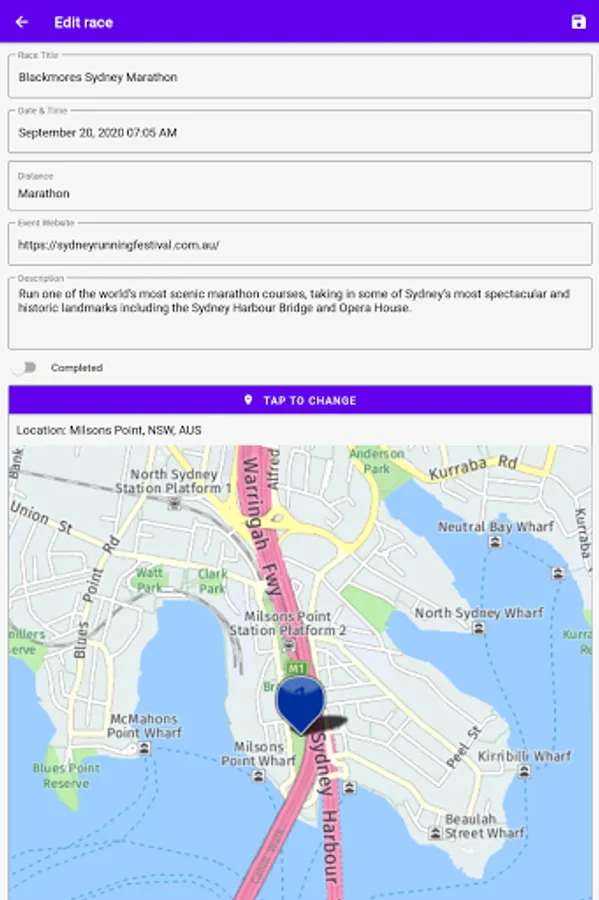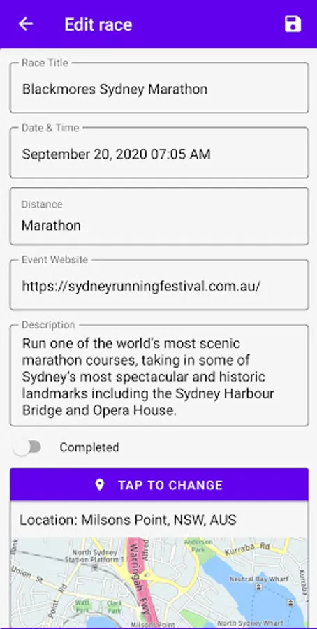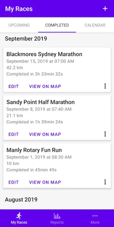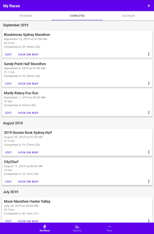 - Calendar and list view of past and upcoming races;