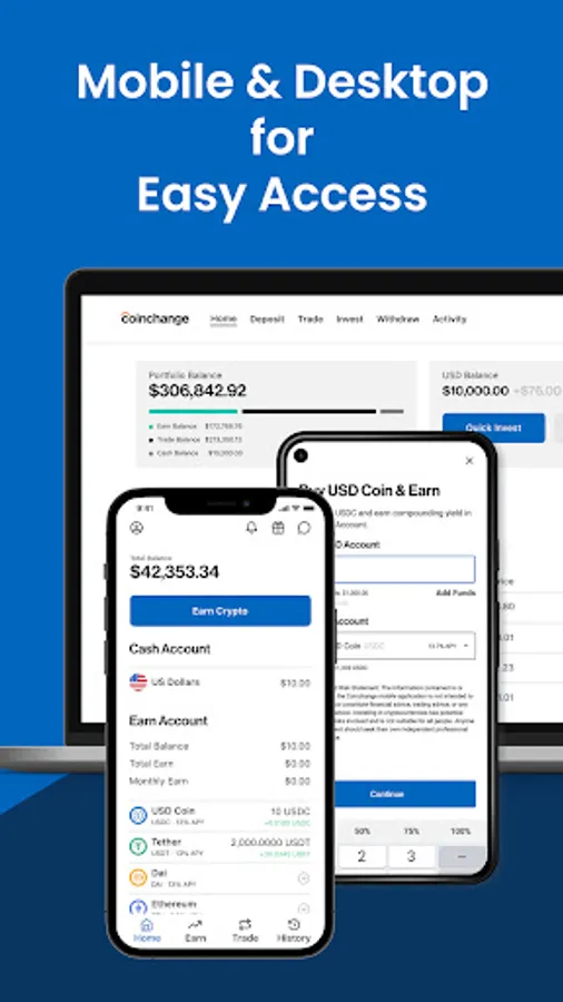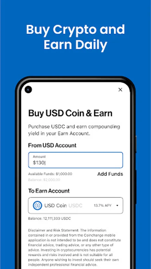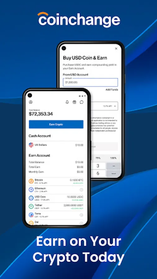 Getting started is easy! Simply transfer USD from your bank or receive crypto from a third-party wallet or exchange to start earning compounding returns in your Coinchange Earn Account. Don’t just HODL, earn crypto on your crypto!