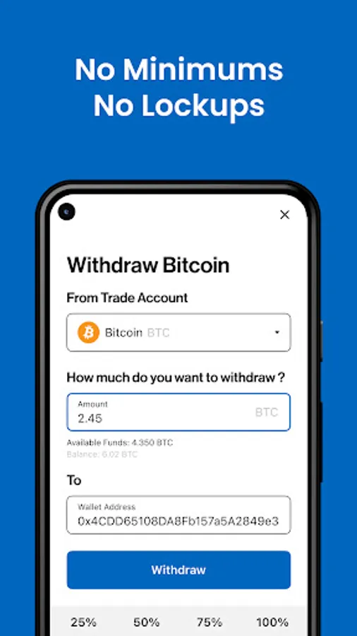 Withdraw from your Earn Account anytime, directly to USD or crypto.