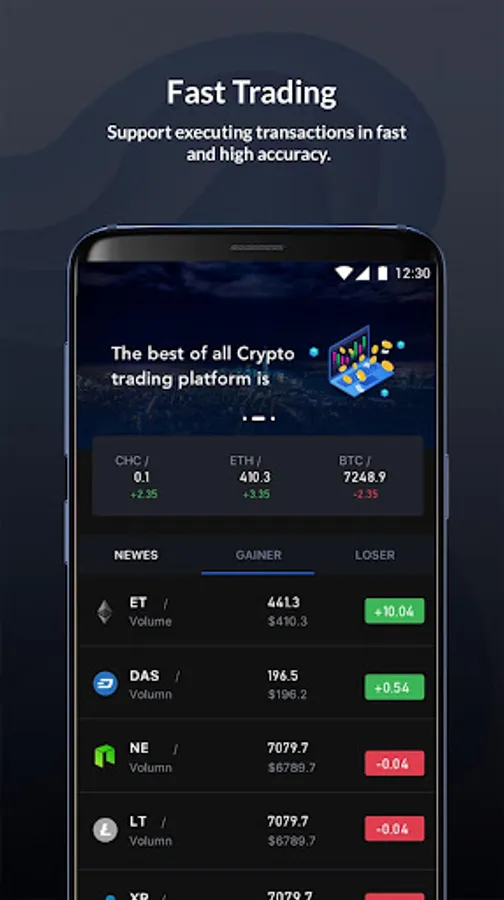 CoinHe is an autonomous, efficient and transparent digital assets trading appication for Android. Our application allows traders and investors to safely trade any size of digital assets without worrying about the impartiality and transparency, the reliability of data security and privacy protection, or the integrity and robustness of the order handling systems.