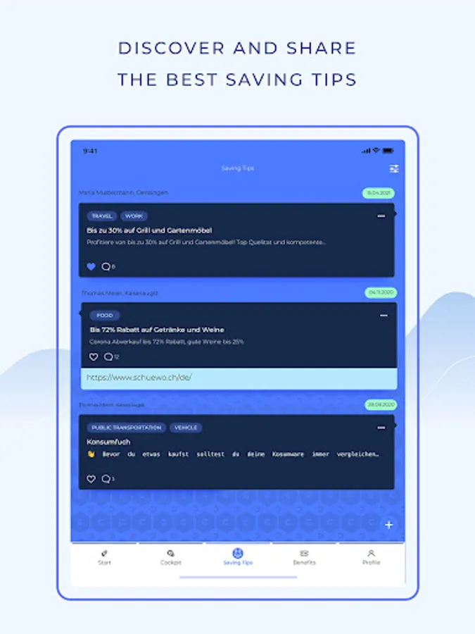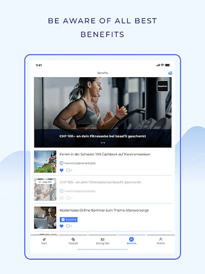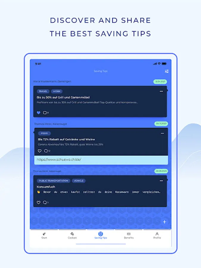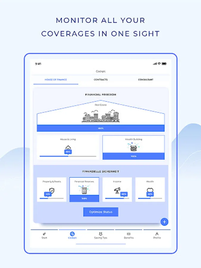 Your personal Cockpit shows you your insurance coverage at any time. In addition, you benefit from numerous financial tips - and can even share your own savings tips with others and profit from an extensive benefits program.
