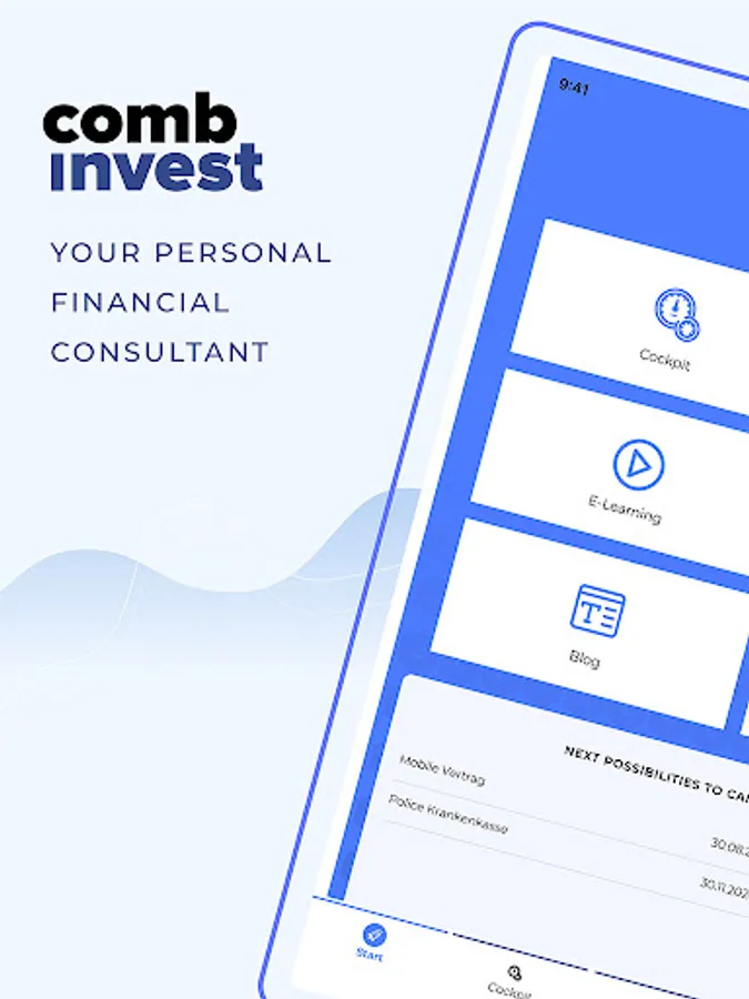 With the Combinvest App you always have your finance and insurance portfolio under control. Manage your contracts, connect directly with your consultant and always keep the full overview.