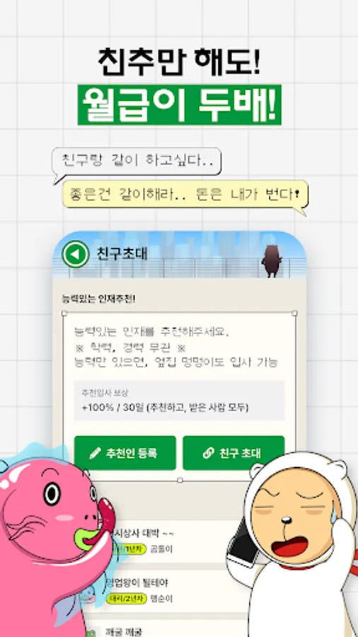 Please use blogs, cafes, websites, etc., excluding Google Play app reviews, to expose and promote your recommender nickname. In addition, if you engage in promotional activities through anti-social methods such as obscenity, impersonation, false promotion, or distribution of content that infringes copyright, use restrictions may be imposed in accordance with the Terms of Use.